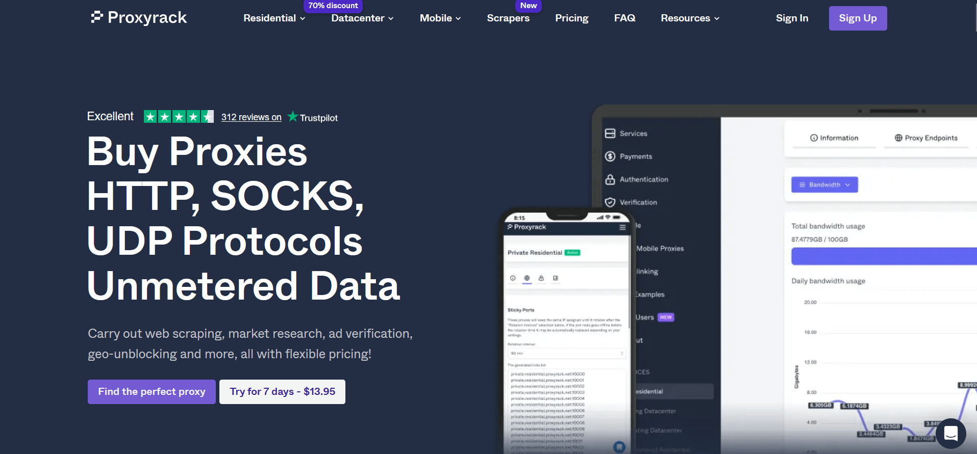 One of the biggest players on the market with huge infrastructure. They work with Fortune 500 companies, offer all proxy types for any tasks.
