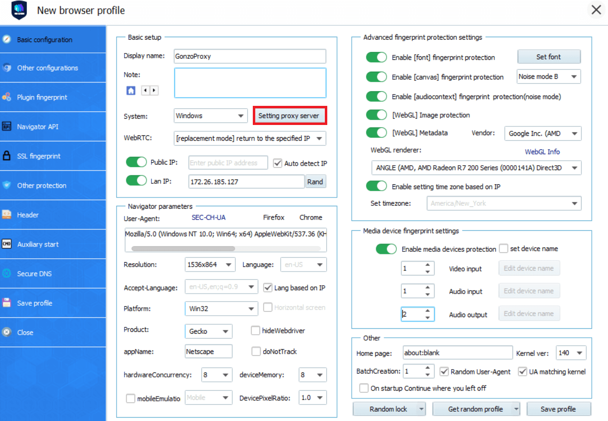 - Profile name: Use descriptive naming like "FB_Ads_Cosmetics_US" or "Amazon_Books_Store_01"