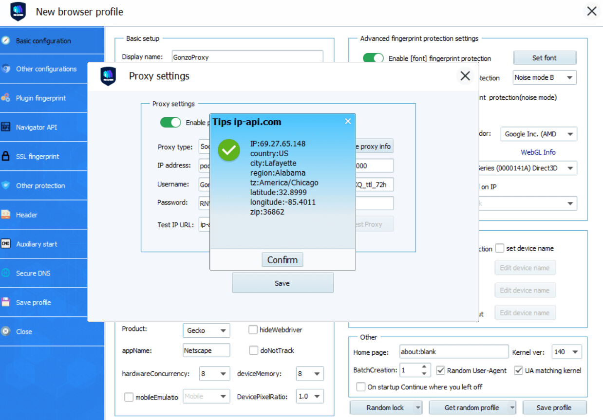 This guide demonstrates integration of GonzoProxy residential proxies with VMLogin antidetect browser. The combination provides complete anonymity - unique fingerprints plus real residential IP addresses from actual home users worldwide.
