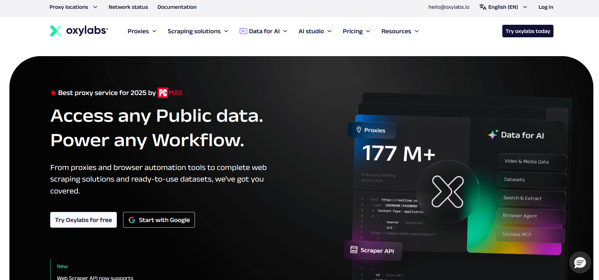 Oxylabs is about enterprise. Big companies, big budgets, big data volumes. One of the largest market players.