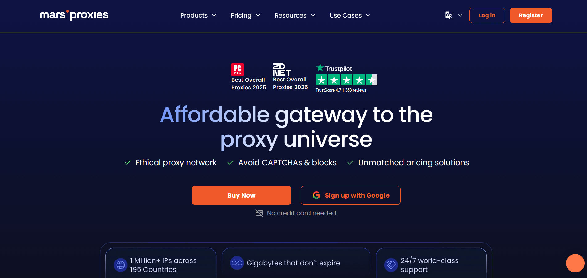 Datacenter proxies are cheap. Registration in a minute. But residential pool is weak. Quality inferior to specialized providers. Not suitable for serious tasks.