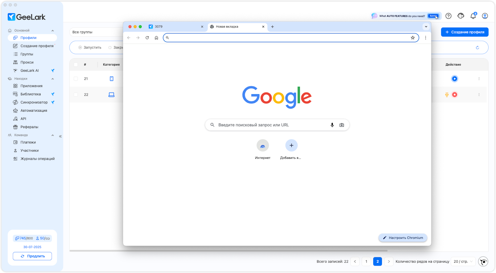 Помимо облачных телефонов, GeeLark также предоставляет традиционный антидетект-браузер для управления аккаунтами с уникальными браузерными профилями.