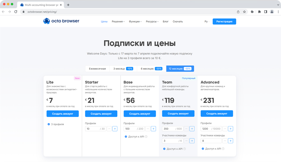 Стоимость Octo Browser