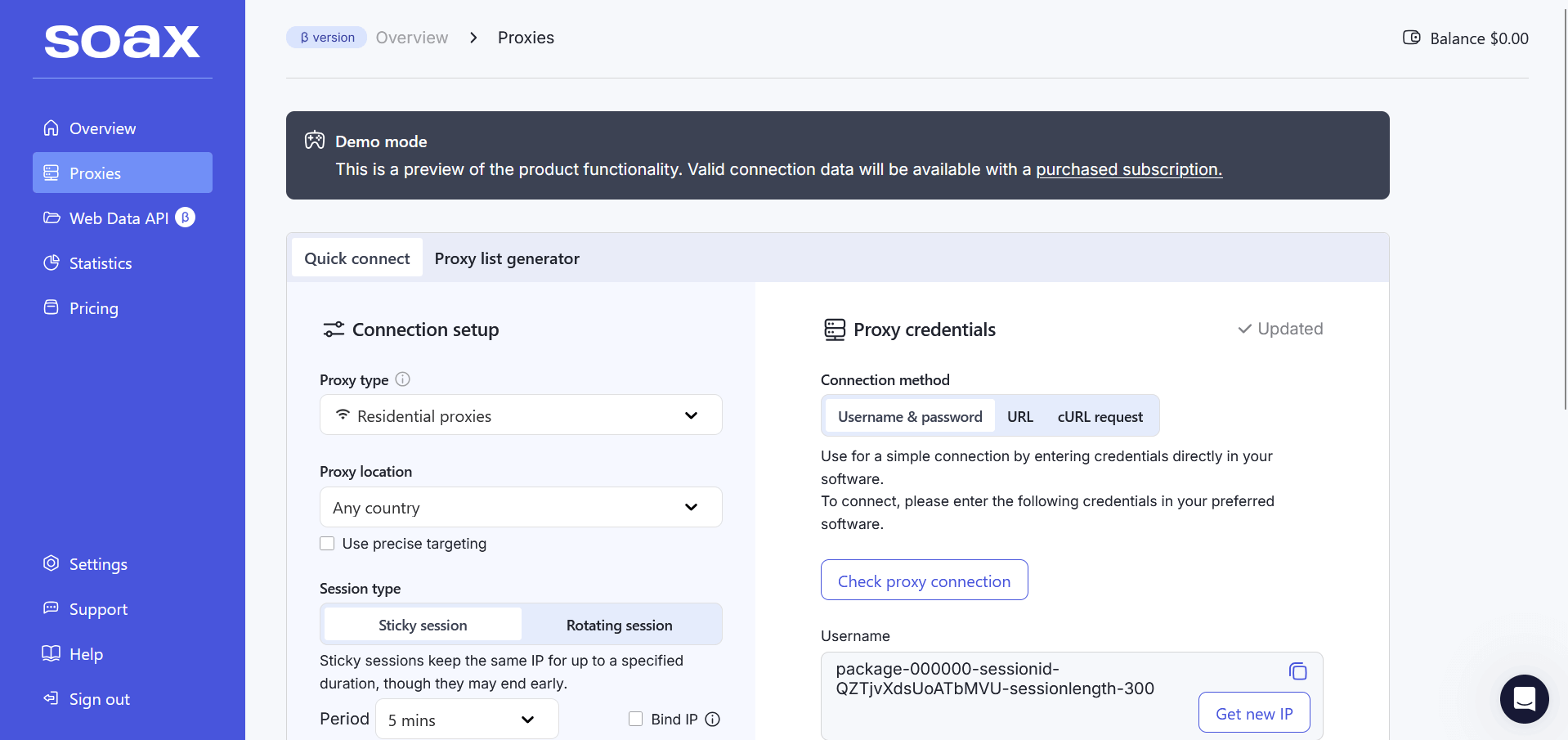 Гибкость настроек: Базовая. Выбор страны и города есть, провайдера нет. Ротация каждые 10 минут или по запросу. Липкие сессии до 30 минут, маловато для некоторых задач.