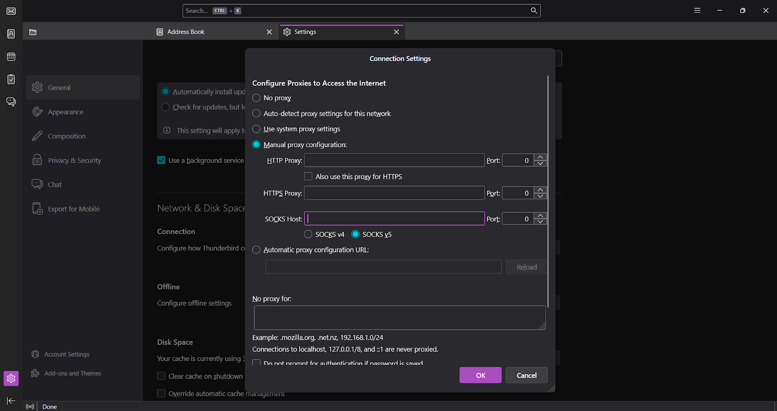 - Введите адрес прокси и порт.