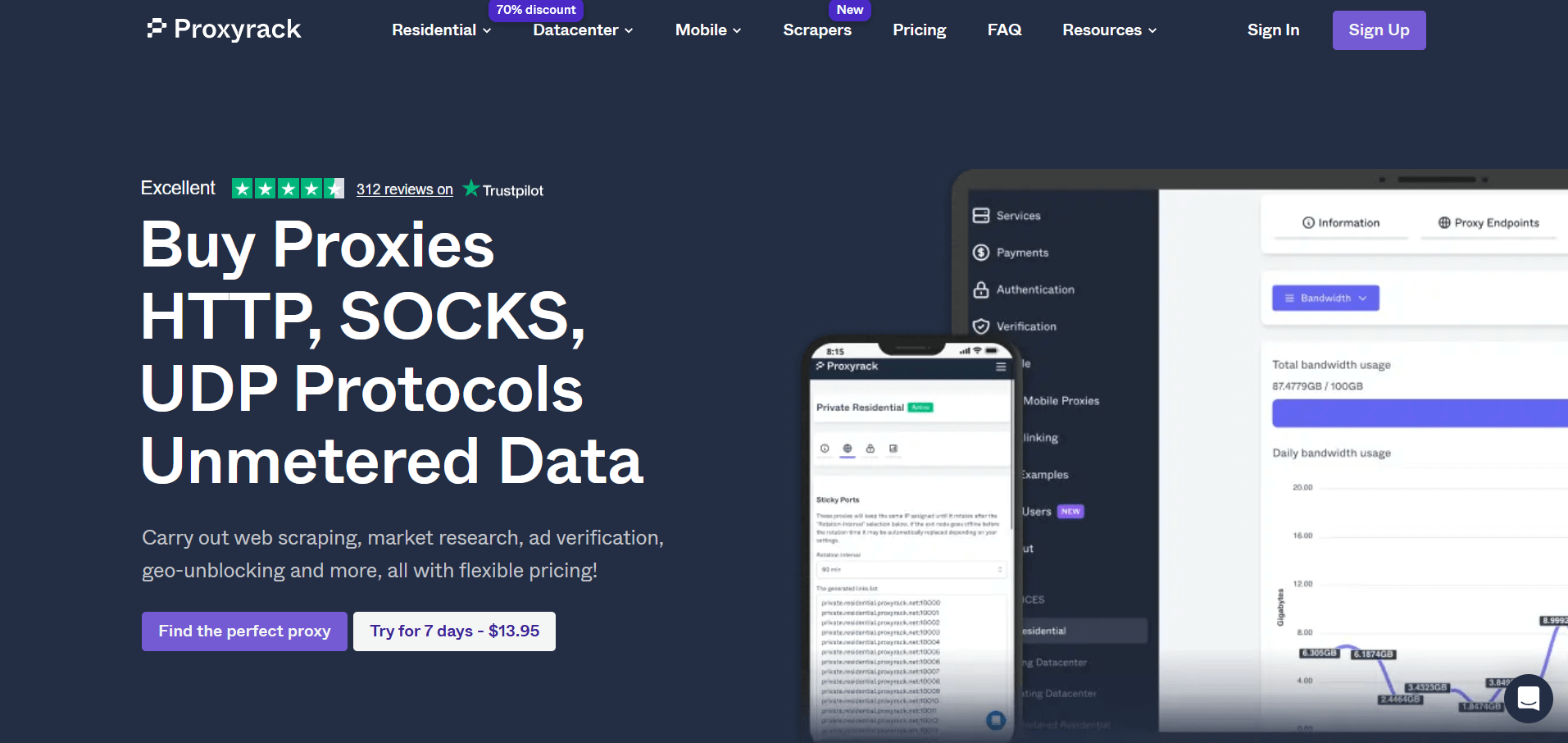ProxyRack мешают резидентские и дата-центр решения. Есть варианты под разные бюджеты от совсем дешевых до приличных.