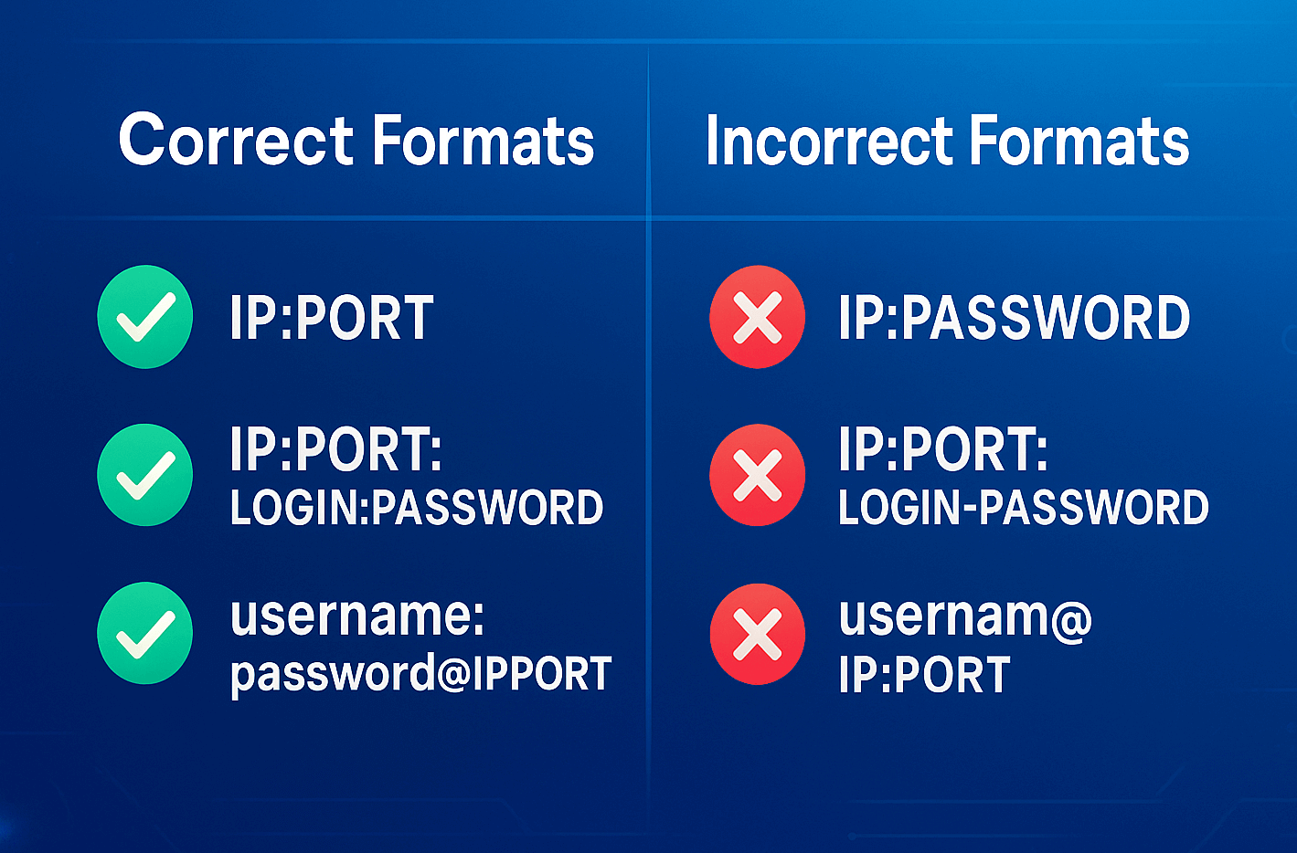 Если решили использовать прокси, первое препятствие в правильном формате записи. Ошибётесь и соединение не установится, получите ошибку Proxy Connection Failed.