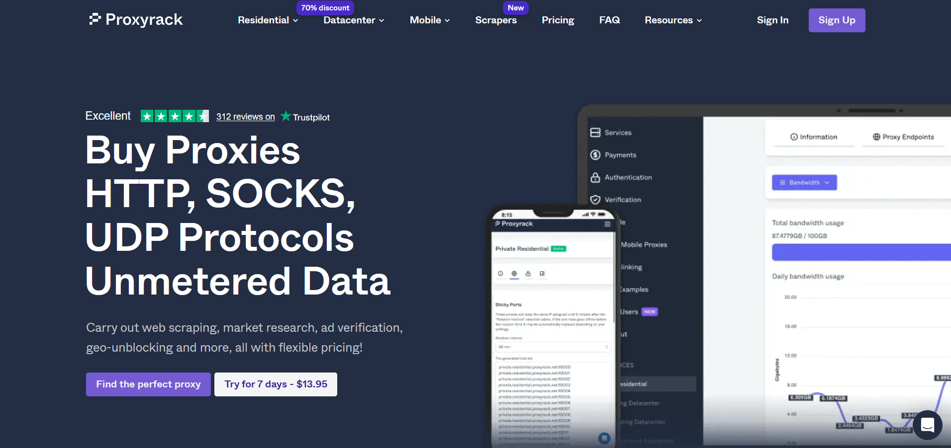 ProxyRack позиционируется как доступное решение для различных задач парсинга и автоматизации. Предлагает несколько типов прокси под разные сценарии использования и бюджеты.